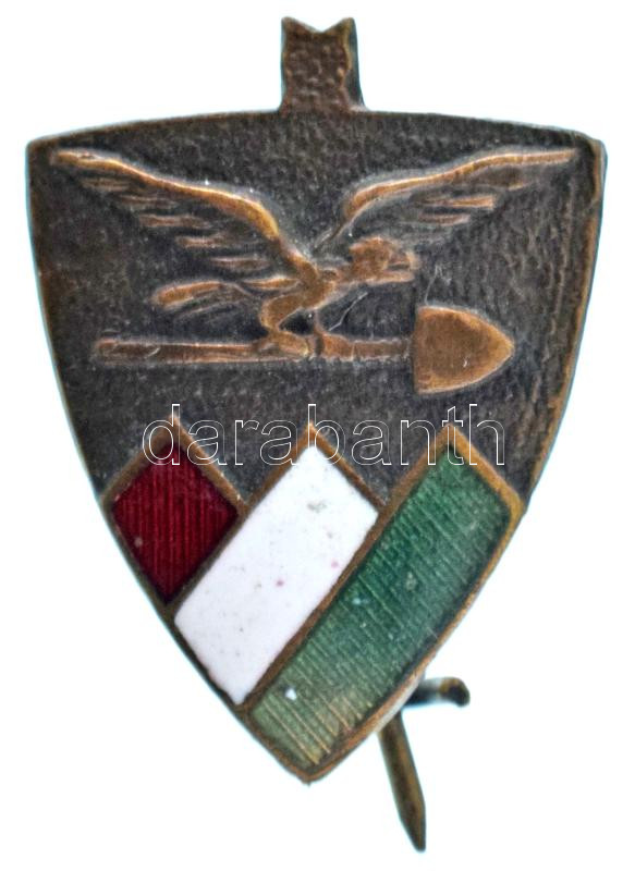Hungary 1944. "Egyetemi és Főiskolai Hallgatók Önkéntes Nemzeti Munkaszolgálata" bronze badge with enamel inlay, (18x13mm) C:AU