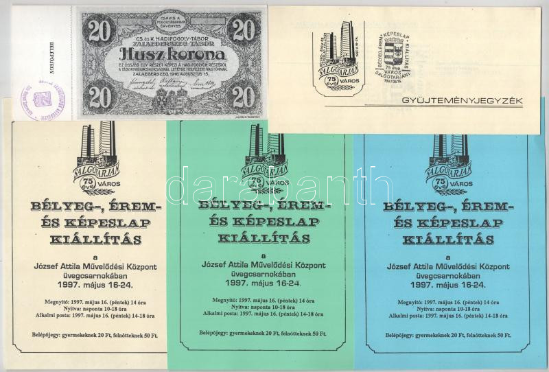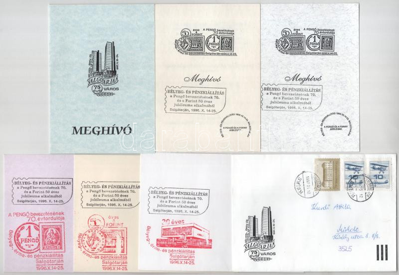 12db-os alkalmi boríték, meghívó, ismertető és belépő-tétel, az 1975-ös salgótarjáni, az 1985-ös zalaegerszegi és az 1996-os és 1997-es salgótarjáni találkozókra