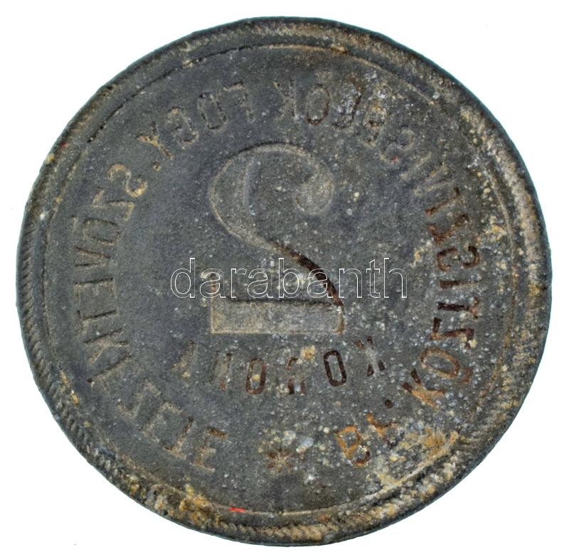 Leírás: 1910-1920 k. Budapest ~1910-1920. 2K "BP. Köztisztviselők Fogy. Szövetkezete" Zn lemez szükségpénz T:XF