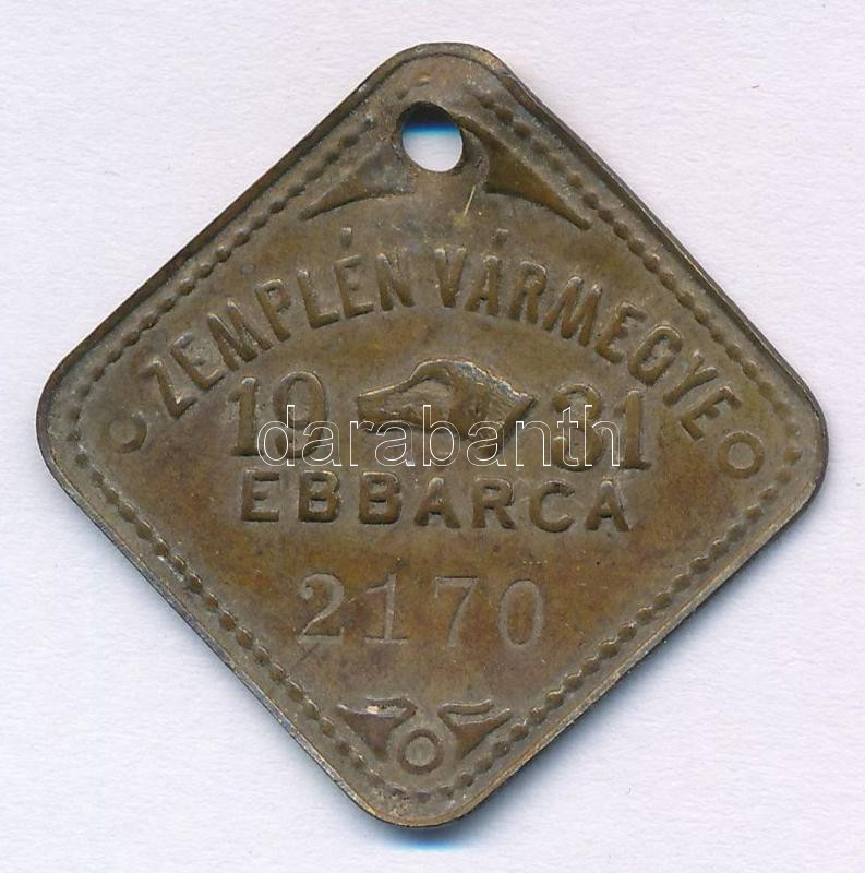 Leírás: 1931. "Zemplén vármegye" bronz ebadójegy / kutyabárca, "2170" sorszámmal (35x35mm) T:XF,VF