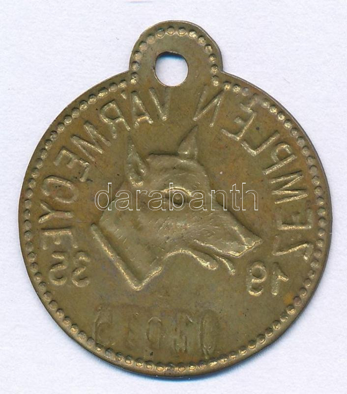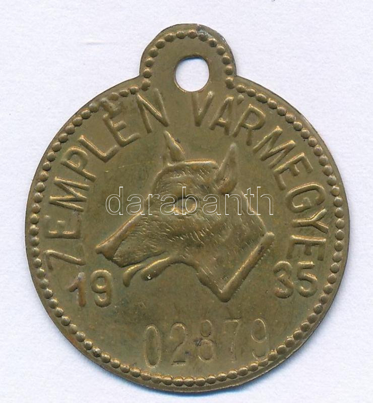 1935. "Zemplén vármegye" bronz ebadójegy / kutyabárca, "... https://www.darabanth.com/hu/472-Gyorsarveres/472.0/Numizmatika/Papir-es-fem-szuksegpenzek~2000007/1935-Zemplen-varmegye-bronz-ebadojegy-kutyabarca-02879-sorszammal-33x29mm-TXF-VF~II3201750