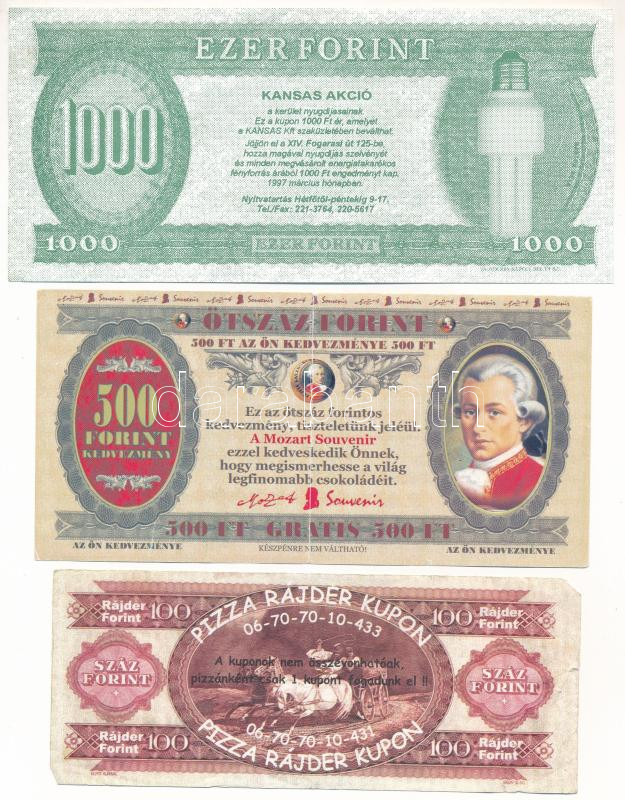 3db klf reklámpénz, közte "Pizza Rájder Kupon", "Mozart... https://www.darabanth.com/hu/472-Gyorsarveres/472.0/Numizmatika/Papir-es-fem-szuksegpenzek~2000007/3db-klf-reklampenz-kozte-Pizza-Rajder-Kupon-Mozart-Souvenir-Kansas-Akcio-TAU-F~II3165041