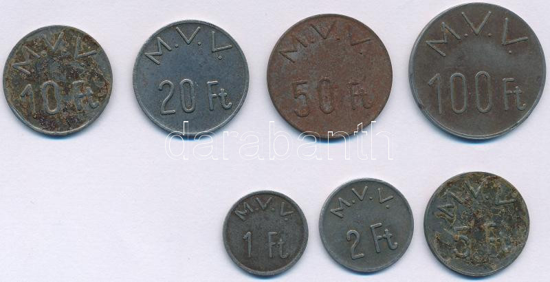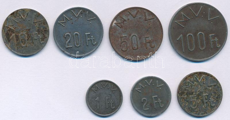 Leírás: ~1950-1970. 1Ft - 100Ft (7xklf) Fe "M.V.V." Miskolci Villamos Vállalat (?) közlekedési bárca T:AU-VF korróziónyom