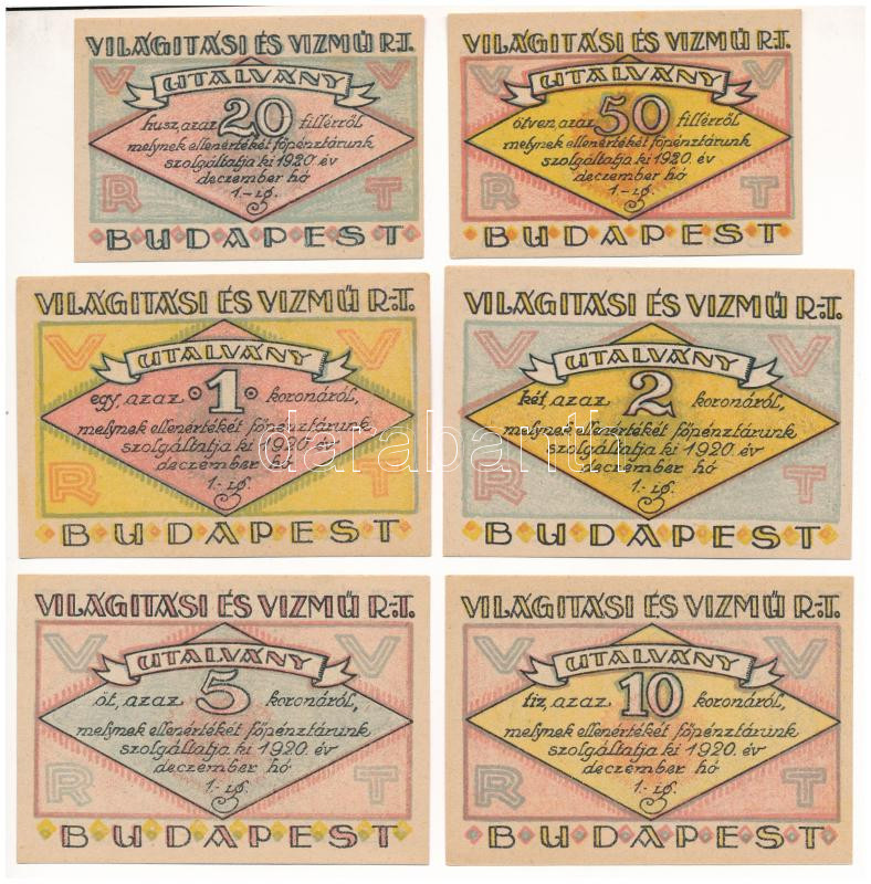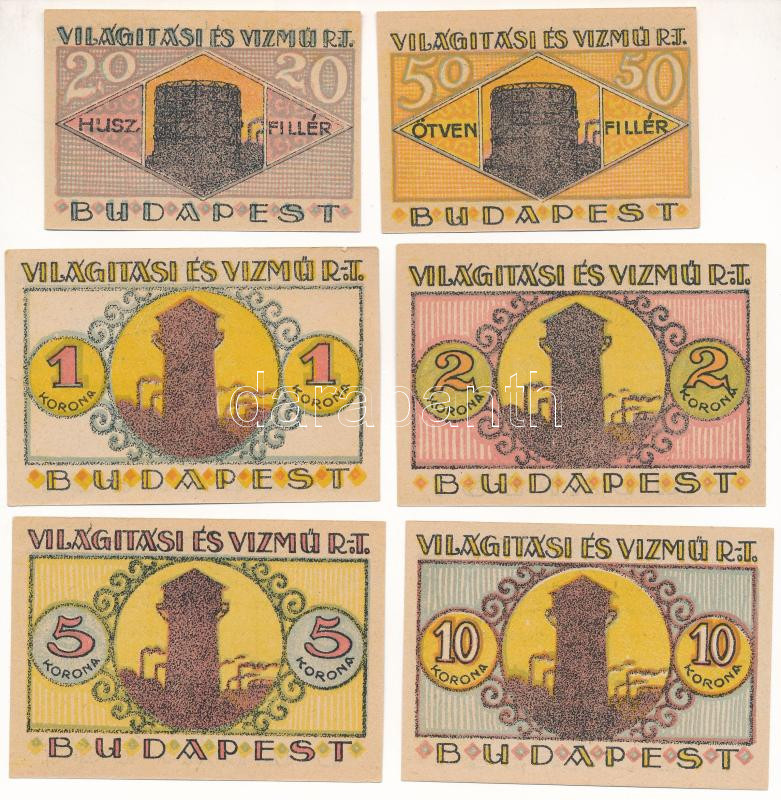 Leírás: Budapest 1920. "Világítási és Vízmű R.T." 20f + 50f + 1K + 2K + 5K + 10K T:UNC,AU