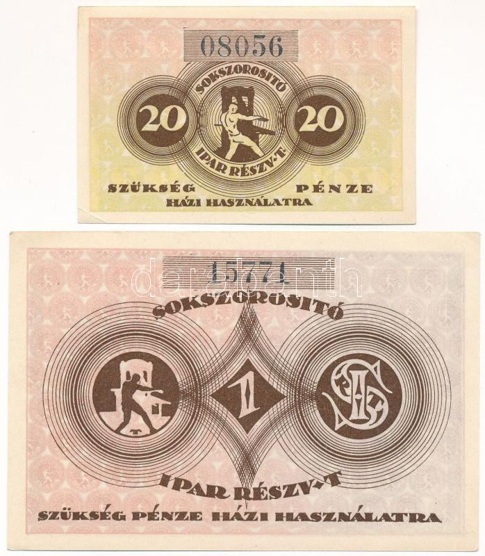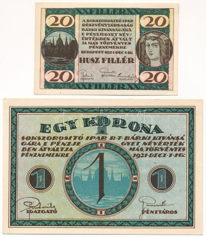 Budapest 1921. 20f + 1K "Sokszorosító Ipar Részvénytársaság"... https://www.darabanth.com/hu/472-Gyorsarveres/472.0/Numizmatika/Papir-es-fem-szuksegpenzek~2000007/Budapest-1921-20f-plus-1K-Sokszorosito-Ipar-Reszvenytarsasag-szuksegpenzek-TAU~II3171693