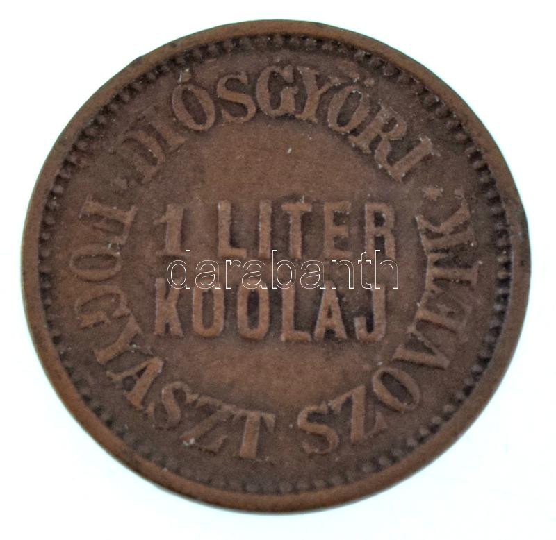Leírás: DN "Diósgyőri Fogyasztási Szövetkezet - 1 liter kőolaj" Cu bárca T:XF