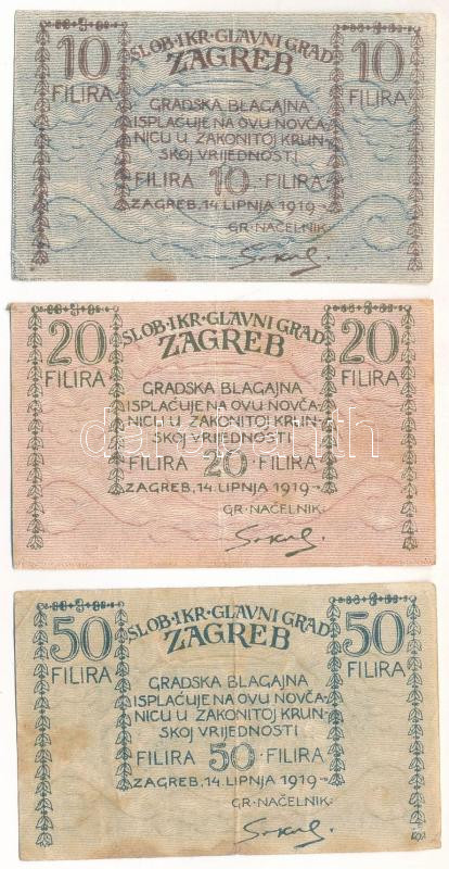 Yugoslavia / Kingdom of the Serbs, Croats and Slovenes / Zagreb 1919. 10 Filira + 20 Filira + 50 Filira C:F spotted