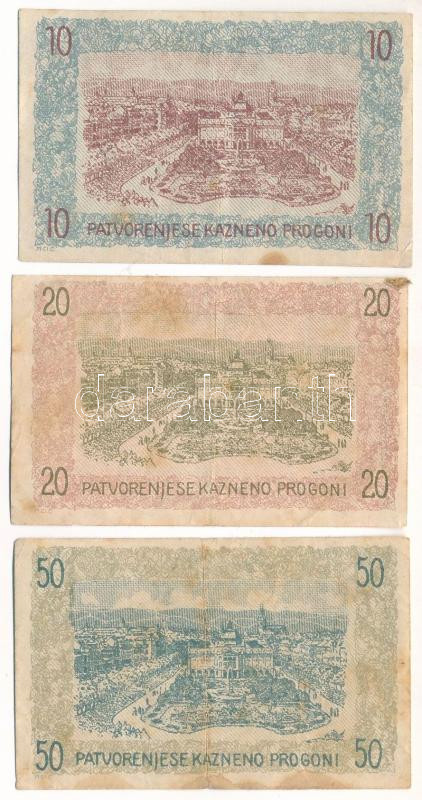 Jugoszlávia / Szerb-Horvát-Szlovén Királyság / Zágráb 1919. 10f + 20f ... https://www.darabanth.com/hu/472-Gyorsarveres/472.0/Numizmatika/Papir-es-fem-szuksegpenzek~2000007/Jugoszlavia-Szerb-Horvat-Szloven-Kiralysag-Zagrab-1919-10f-plus-20f-plus-50f-TF-folt-Yugosla~II3195075