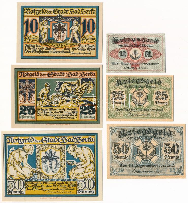 Leírás: Német Birodalom / Bad Berka 1917. 10pf-50pf háborús pénz (3xklf) + Weimari Köztársaság / Bad Berka 1923. 10pf-50pf szükségpénz (3xklf) T:UNC,AU