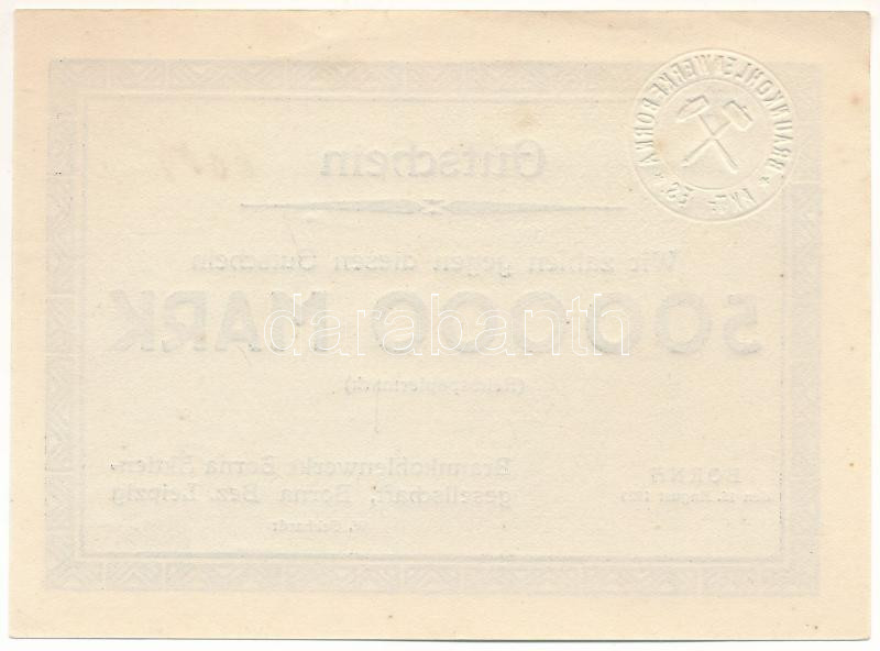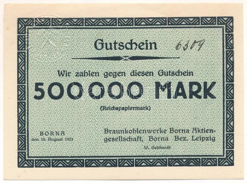 Német Birodalom / Weimari Köztársaság / Borna / Bornai Barnakőszénbánya Rt. 1923. 500.000M T:AU kisebb hajlások