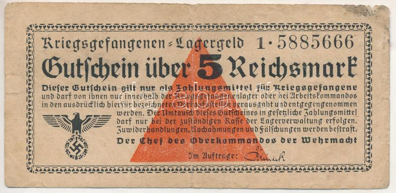 Német Harmadik Birodalom / Hadifogolytábor DN (1939-1944) 5M hadifogolytábori pénz T:F,VG folt, kis anyaghiány