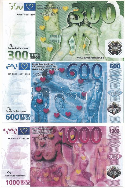 Leírás: Németország DN 300E + 600E + 1000E erotikus fantázia bankjegy T:UNC Germany ND 300 Euro + 600 Euro + 1000 Euro erotic fantasy banknote C:UNC