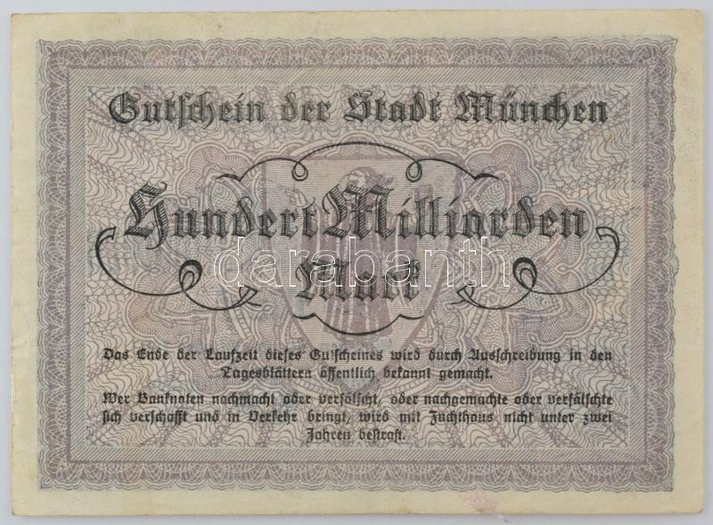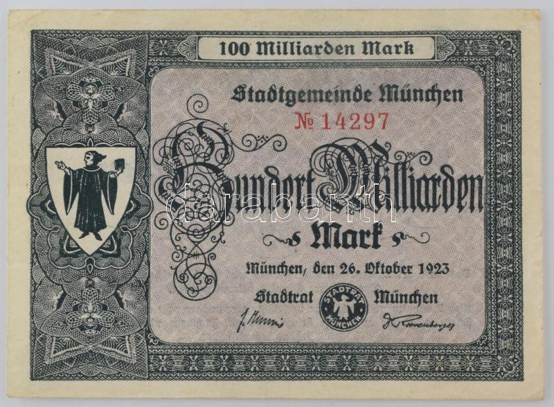 Németország / Weimar Köztársaság / Bajorország / München 1923. 100.000.000.000M vízjeles papíron, "14297" sorszámmal T:F szép papír Germany / Weimar Republic / Bavaria / München 1923. 100.000.000.000 Mark on watermarked paper, with "14297" serial number C:F fine paper