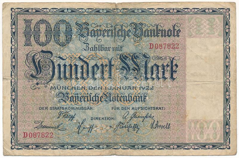 Németország / Weimari Köztársaság / Bajorország 1922. 100M T:F,VG lyuk... https://www.darabanth.com/hu/472-Gyorsarveres/472.0/Numizmatika/Papir-es-fem-szuksegpenzek~2000007/Nemetorszag-Weimari-Koztarsasag-Bajororszag-1922-100M-TF-VG-lyuk-Germany-Weimar-Republ~II3029783
