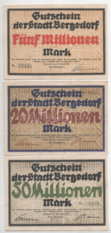 Leírás: Németország / Weimari Köztársaság / Bergedorf 1923. 5.000.000M-100.000.000.000M szükségpénz (7xklf) T:XF-F