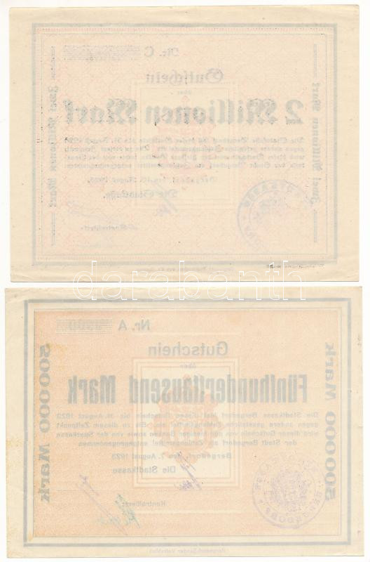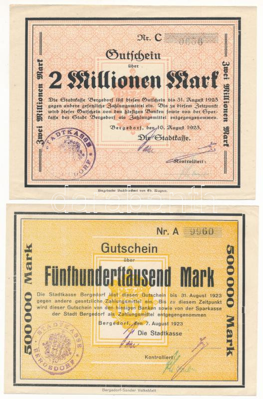 Leírás: Németország / Weimari Köztársaság / Bergedorf 1923. 500.000M + 2.000.000M szükségpénz T:AU,VF gyűrődések