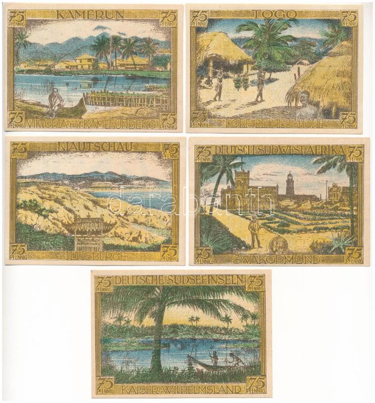 Germany / Weimar Republic / Berlin 1921. 75 Pfennig necessity note / notgeld "Deutsch-Hanseatischer Kolonial Gedenktag" A-serie (5xdiff) C:UNC,AU