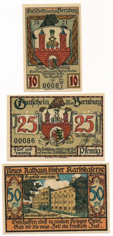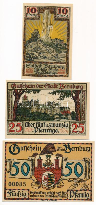Németország / Weimari Köztársaság / Bernburg ~1920. 10pf + 25pf + 50pf szükségpénz, mindegyik nagyon alacsony sorszámmal (00085, 00086 és 00087) T:UNC