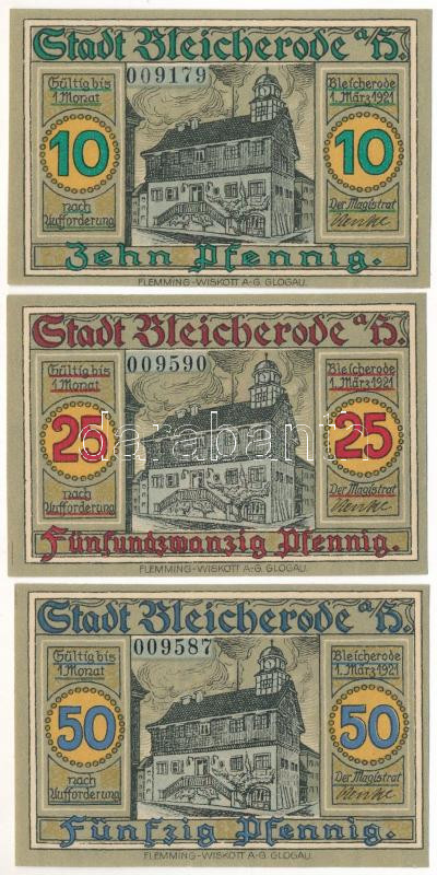 Leírás: Németország / Weimari Köztársaság / Bleicherode 1921. 10pf-50pf (3xklf) T:UNC,AU Germany / Weimar Republic / Bleicherode 1921. 10 Pfennig - 50 Pfennig (3xdiff) C:UNC,AU