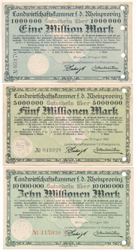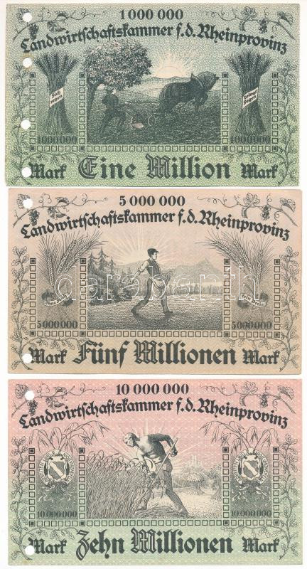 Németország / Weimari Köztársaság / Bonn 1923. 1.000.000M + 5.000.000M + 10.000.000M mindhárom lyukasztással érvénytelenítve T:AU,XF sarokhajlások Germany / Weimar Republic / Bonn 1923. 1.000.000 Mark + 5.000.000 Mark + 10.000.000 Mark all cancelled by a hole C:AU,XF folded corners