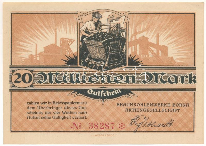 Leírás: Németország / Weimari Köztársaság / Borna / Bornai Barnakőszénbánya Rt. ~1923. 20.000.000M T:XF