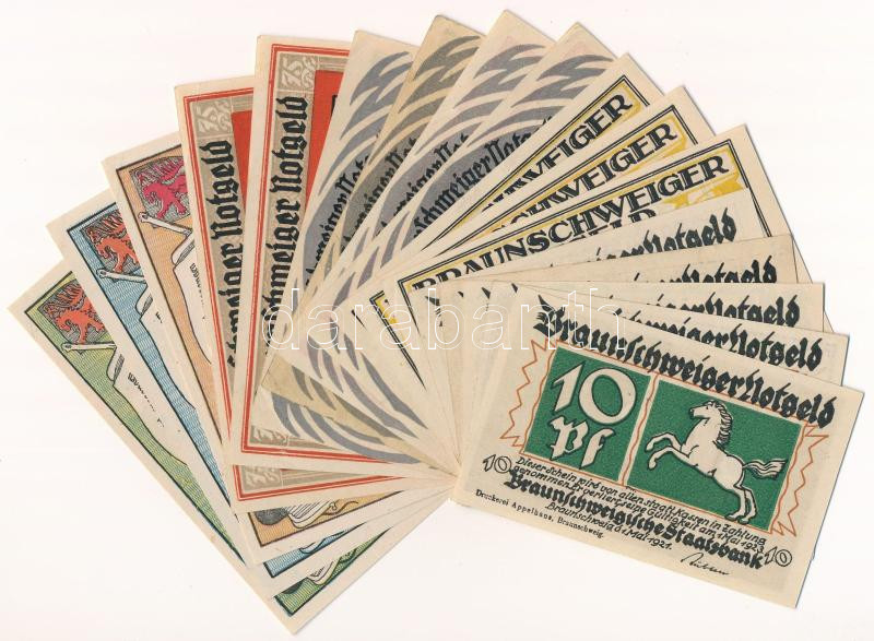 Leírás: Németország / Weimari Köztársaság / Braunschweig ~1921-1923. 10pf-75pf (18db, 16xklf) T:UNC-F Germany / Weimar Republic / Braunschweig ~1921-1923. 10 Pfennig - 75 Pfennig (18pcs, 16xdiff) C:UNC-F