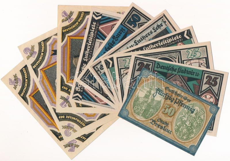 Leírás: Németország / Weimari Köztársaság / Breslau (Wroclaw) 1920-1922. 25pf-5M (10xklf) T:UNC-XF Germany / Weimar Republic / Breslau (Wroclaw) 1920-1922. 25 Pfennig - 5 Mark (10xdiff) C:UNC-XF