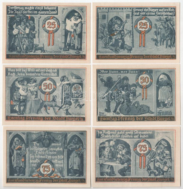 Leírás: Németország / Weimari Köztársaság / Bürgel 1921. 25pf-75pf (6xklf) T:UNC,AU