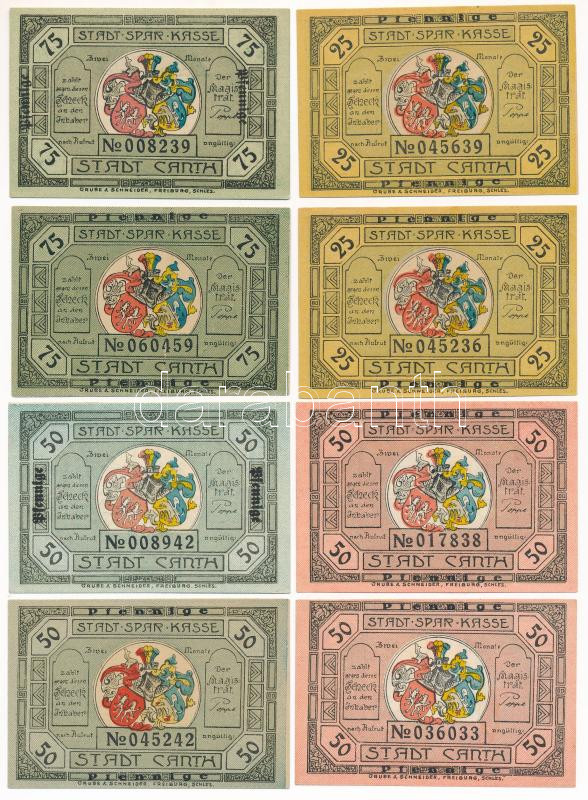 Leírás: Németország / Weimari Köztársaság / Canth (Kąty Wroclawskie) ~1920. 25pf-75pf (8xklf) T:UNC,AU Germany / Weimar Republic / Canth (Kąty Wrocławskie) ~1920. 25 Pfennig - 75 Pfennig (8xdiff) C:UNC,AU