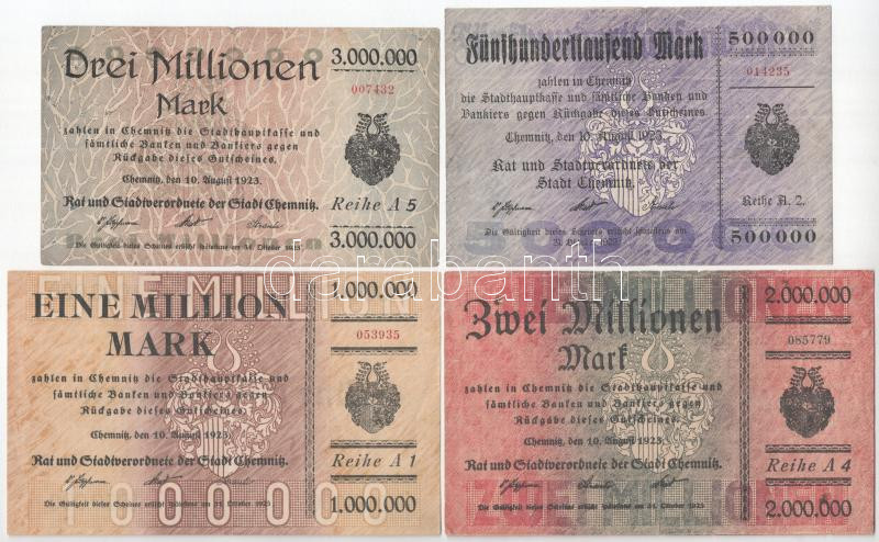 Németország / Weimari Köztársaság / Chemnitz 1923. 500.000M-3.000.000M (4xklf) T:F,VG közte szép papír