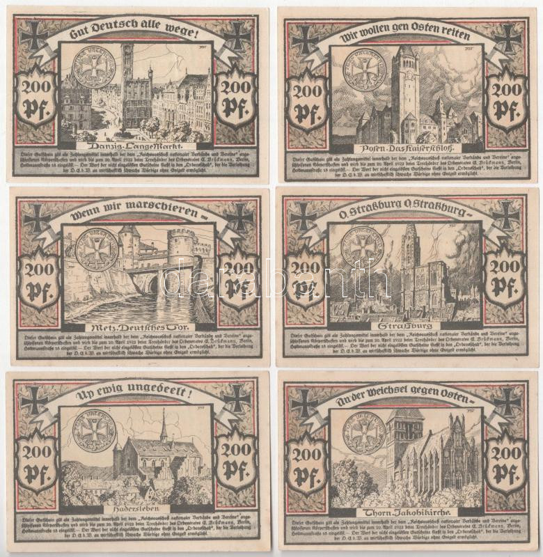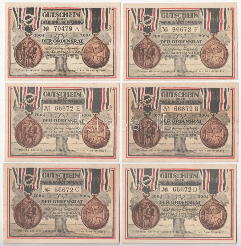 Germany / Weimar Republic / Ordensrat 1922. 200 Pfennig necessity note / notgeld "Deutsche Ehrendenkmünze des Weltkrieges mit dem Kampfabzeichen" (6xdiff) C:UNC,AU