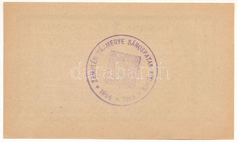 Sárospatak 1919. 1K hátlapon bélyegzővel, aláírással, "0668"... https://www.darabanth.com/hu/472-Gyorsarveres/472.0/Numizmatika/Papir-es-fem-szuksegpenzek~2000007/Sarospatak-1919-1K-hatlapon-belyegzovel-alairassal-0668-sorszammal-TAU-Adamo-SAR-31~II3180159