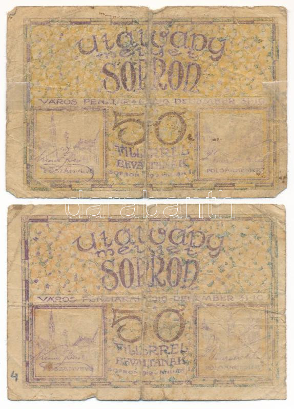 Leírás: Sopron 1919. 50f utalvány (2x) T:VG kis anyaghiány Adamo SOP-5.1.1