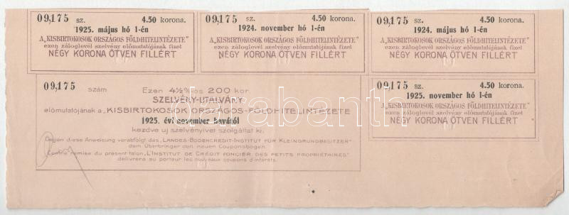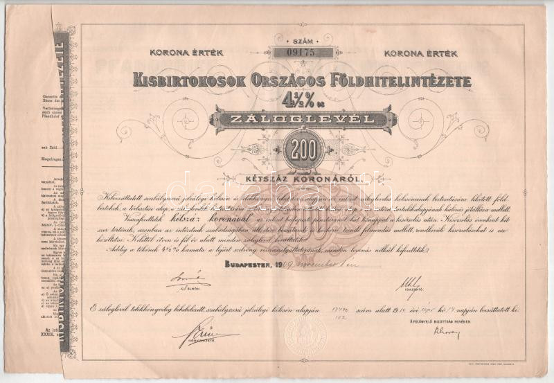 Budapest 1909. "Kisbirtokosok Országos Földhitelintézete" 4 1/2%-os záloglevele 100Ft-ról, magyar, német és francia nyelven, szárazpecséttel, szelvényekkel T:F