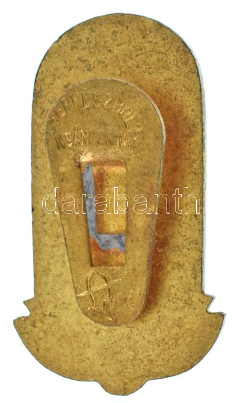 Leírás: 1934. "Tornász Világbajnokság Budapest 1934" aranyozott bronz gomblyukjelvény "Cserkészbolt V. N Sándor u.6." gyártói jelzéssel (30x16mm) T:AU