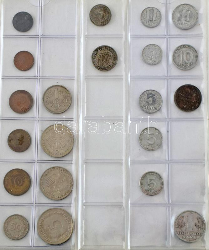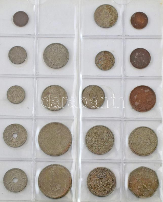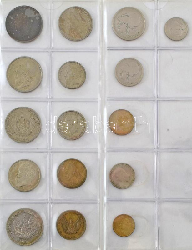163db-os érme gyűjtemény albumba rendezve, több klf országból, néhány kis ezüsttel (Svédország 1956. 50ö Ag, Amerikai Egyesült Államok 1941-1964. Dime Ag (2xklf) ), közte Magyarország, Görögország, Dánia, Amerikai Egyesült Államok, T:vegyes 163pcs of coins in collectors album from diff countries, with some small silver pcs (Sweden 1956. 50 Öre Ag, USA 1941-1964. Dime Ag (2xdiff) ), with Hungary, Greece, Denmark, USA C:mixed