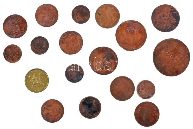 Leírás: Vegyes 18db-os rossz tartású magyar és külföldi rézpénz tétel, közte egy "Cseh Köztársaság Hadserege" emlékérem T:vegyes
