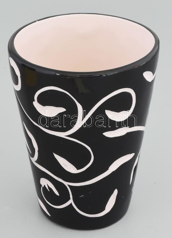 Leírás: Fekete-fehér mázas kerámia design váza. Jelzés nélkül, hibátlan, m: 15 cm