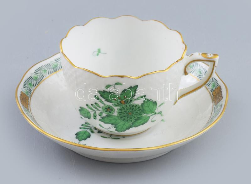 Leírás: Herendi zöld Apponyi mintás csésze alátéttel. Jelzett, d: 11,5 cm
