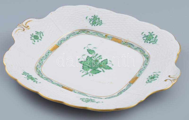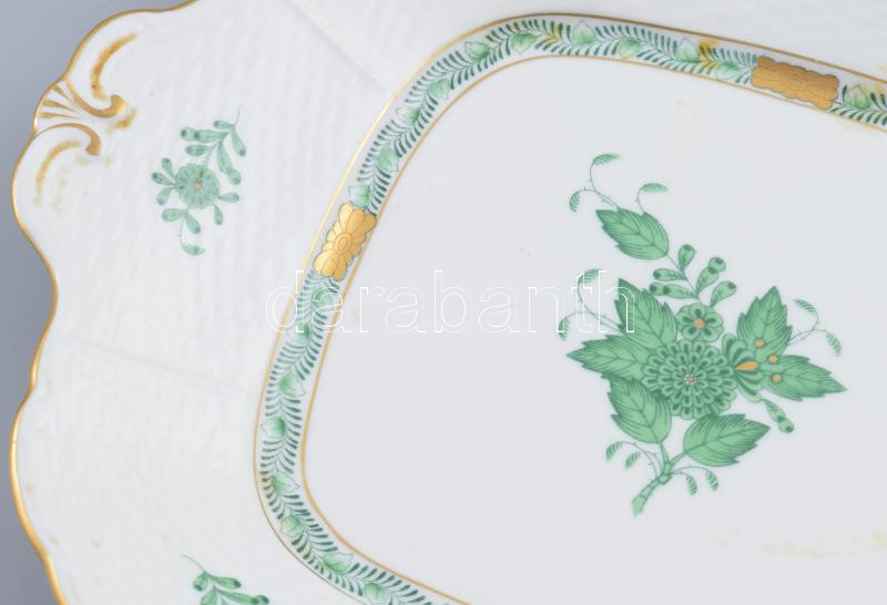 Leírás: Herendi zöld Apponyi mintás kínáló, jelzett, kézzel festett, 28x24 cm