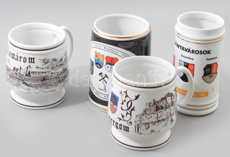 Leírás: Hollóházi 4 darab porcelán korsó, jelzett, m: 15,5 cm alatt