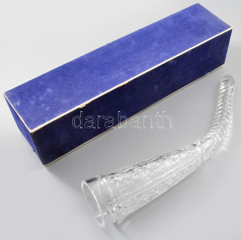 Kristály kürt. Jelzés nélkül, hibátlan, dobozában, h: 40 cm https://www.darabanth.com/hu/472-Gyorsarveres/472.0/Porcelan-keramia-uveg/Uvegtargyak~1000008/Kristaly-kurt-Jelzes-nelkul-hibatlan-dobozaban-h-40-cm~II3147524