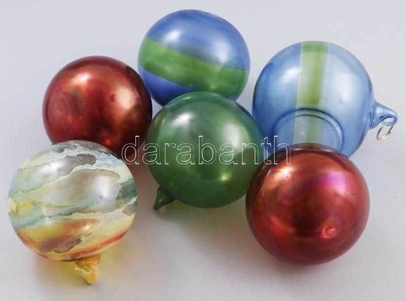 Leírás: Murano 6 darab színezett üveg karácsonyfa gömb, d: cca 7-8 cm