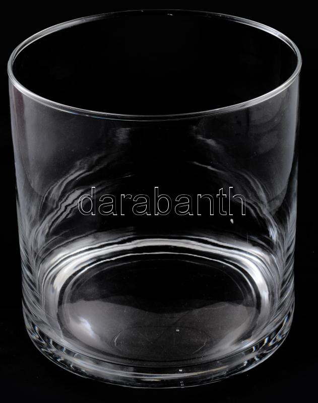 Leírás: Nagyméretű retro skandináv hengeralakú üveg díszelem kaspó / tárolóedény / váza. Jelzés nélkül, hibátlan, d: 25 cm, m: 25,5 cm