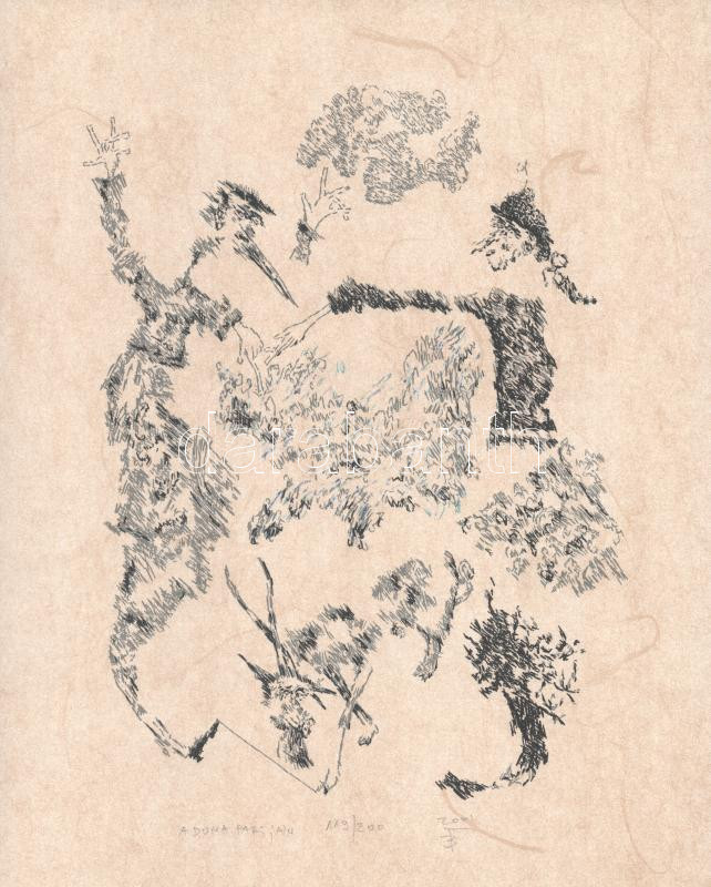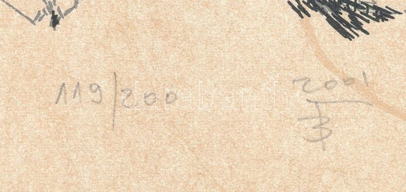 Banga Ferenc (1947-): A Duna partján. Lito-ofszet, papír, jelzett, számozott (119/200), 29x23 cm. A 2001-ben megjelent In passing/Menet közben c. mappából.
