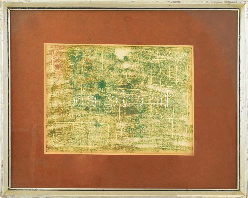 Leírás: Barta István (1892-1976): Négyzetek és körök. Monotípia, papír, jelzés nélkül, üvegezett keretben 29x21 cm