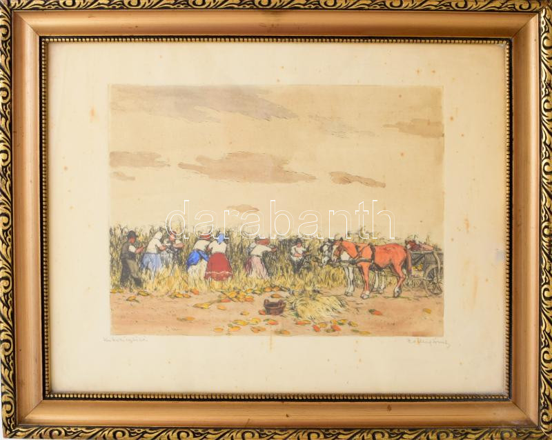 Csillag József (1894-1977): Kukoricatörés. Színezett rézkarc, papír, 2... https://www.darabanth.com/hu/473-Gyorsarveres/473.0/Festmenyek-es-grafikak/Festmenyek-es-grafikak~500003/Csillag-Jozsef-1894-1977-Kukoricatores-Szinezett-rezkarc-papir-21x28-cm-Dekorativ-faker~II3203803
