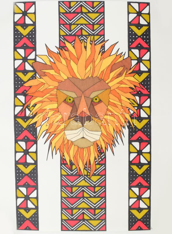 Kun Sarolta (1990-): Etno oroszlán, vegyes technika, papír, jelzett, 5... https://www.darabanth.com/hu/473-Gyorsarveres/473.0/Festmenyek-es-grafikak/Festmenyek-es-grafikak~500003/Kun-Sarolta-1990-Etno-oroszlan-vegyes-technika-papir-jelzett-50C39740-cm~II3206619
