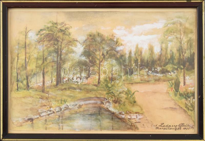 Ledniczky Zoltán (-): Margitsziget, 1955. Akvarell, papír, jelzett. Üv... https://www.darabanth.com/hu/473-Gyorsarveres/473.0/Festmenyek-es-grafikak/Festmenyek-es-grafikak~500003/Ledniczky-Zoltan-Margitsziget-1955-Akvarell-papir-jelzett-Uvegezett-fakeretben-15x22-5~II3109530