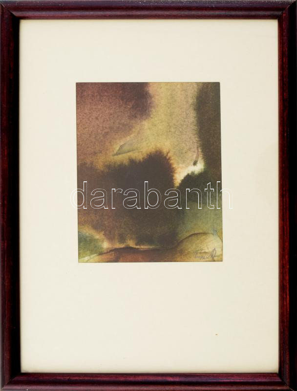 Leírás: Lóránt János Demeter (1938-): Tájvázlat III. Akvarell, papír, jelzett, hátoldalán Lóránt János Demeter autográf feliratával Supka Magdolna (Manna) művészettörténész részére. Üvegezett fakeretben, 17x13 cm